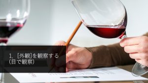 ワインをグラスの4分の1から3分の1注ぎ、観察していきます。