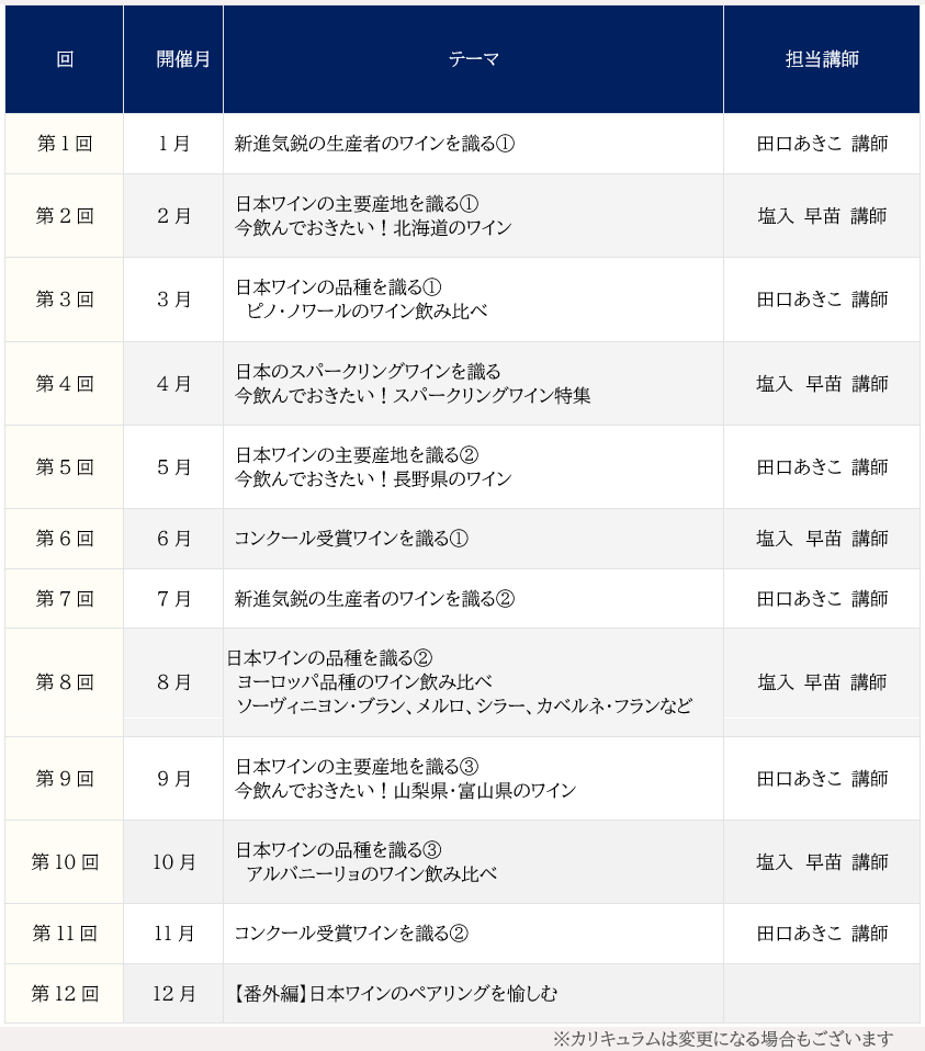 「日本ワイン Lover講座」は、月1回開催・各回募集。