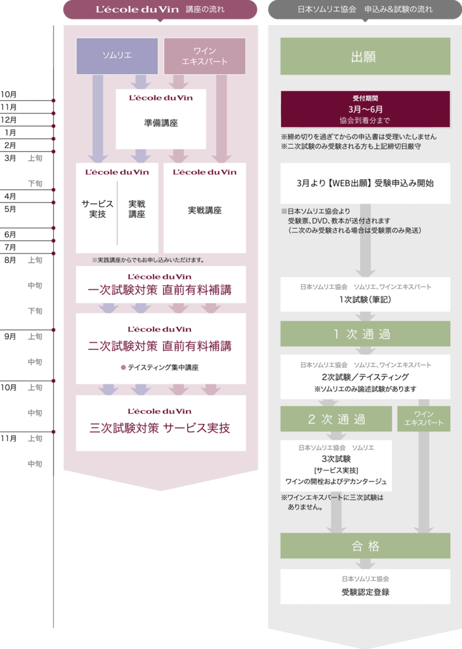 日本ソムリエ協会の教本に準拠し、経験豊富な講師陣が、一次試験を“より効率的に”“より確実に”突破するためのカリキュラムをご用意しました。